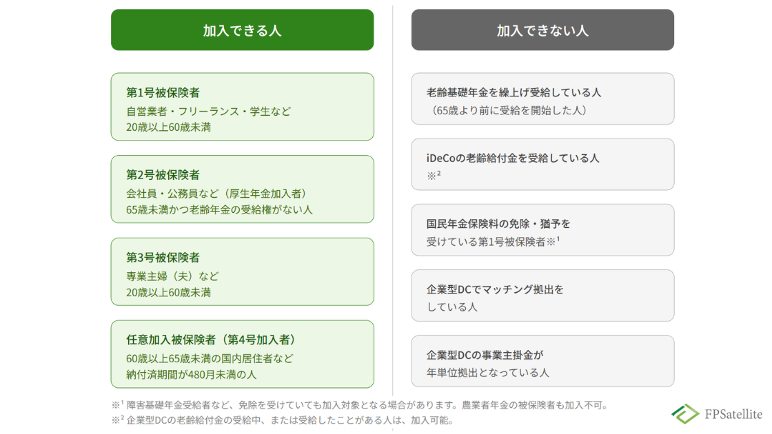 iDeCoは誰でも自由に加入できるわけではありませんが、国民年金の被保険者であれば、多くの場合は加入対象となります。
